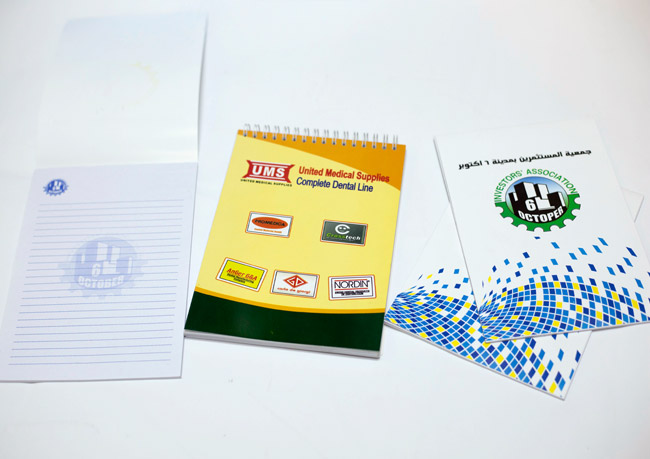نقوم بطباعة البلوك نوت باختلاف أشكالها سلك لولبى أو غراء من الرأس وباختلاف الأشكال حسب رغبة العملاء